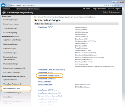 Aktivieren Sie die Google Cloud Print-Funktion des Geräts. Sie können die Google Cloud Print-Funktion des Geräts auch deaktivieren.