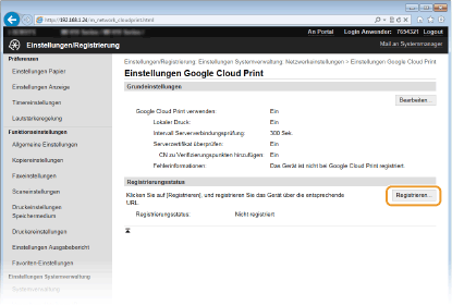 Klicken Sie in [Registrierungsstatus] auf [Registrieren...].