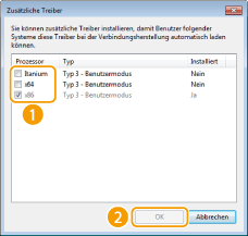 Aktivieren Sie das Kontrollkästchen für die verwendete Systemarchitektur der anderen Computer, und klicken Sie auf [OK].