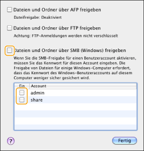 Wählen Sie [Dateien und Ordner über SMB (Windows) freigaben] aus.
