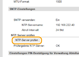 [Netzwerkeinstellungen] [Einstellungen TCP/IP], und klicken Sie unter [SNTP-Einstellungen] auf [NTP-Server prüfen]. Wenn die Verbindung ordnungsgemäß hergestellt wurde, wird das unten abgebildete Ergebnis angezeigt. Beachten Sie, dass die Systemuhr mit dieser Funktion nicht eingestellt wird.![]() |