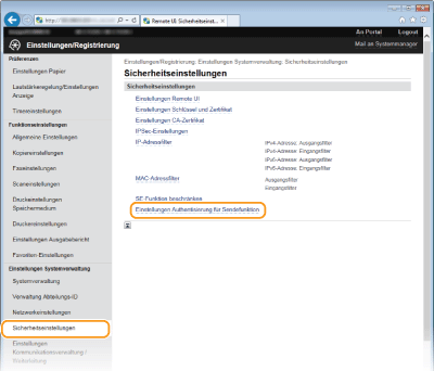 [Authentisierungsanzeige mit den Authentisierungsinformationen anzeigen, die für den Start des Sendevorgangs verwendet wird]