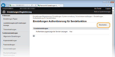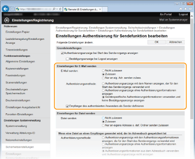 Wählen Sie diese Option aus, wenn mit den in E-Mail-Einstellungen auf dem Gerät festgelegten Angaben für Benutzername und Passwort eine Authentisierung erfolgt.