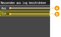 Sie können die Auswahl zuvor verwendeter Empfänger und Einstellungen aus den Übertragungsdatensätzen zum Faxen oder zum Versenden gescannter Dokumente per E-Mail und das Speichern in einem gemeinsamen Ordner oder auf einem Dateiserver deaktivieren.