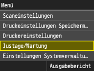 Zu allen Einstellungen zur Justage und zur Wartung ist eine kurze Erläuterung angegeben. Die Standardeinstellungen sind mit einem Kreuz (