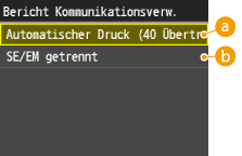 Wählen Sie <Ein>, wenn der Bericht automatisch nach jeweils 40 Übertragungen gedruckt werden soll, oder <Aus>, wenn der Bericht nicht automatisch gedruckt werden soll.