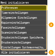 Erläuterungen zum Initialisieren der Einstellungen in <Netzwerkeinstellungen> und <Einstellungen Systemverwaltung> finden Sie in Initialisieren der Einstellungen Systemverwaltung.