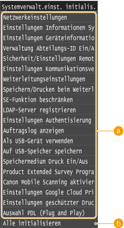 Sie können zum Initialisieren der Einstellungen unter <Netzwerkeinstellungen> auch folgendermaßen vorgehen: Tippen Sie auf <Menü>