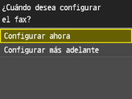 Si pulsa <Configurar más adelante>, el modo de recepción se establece en <Auto>. Más adelante, si desea configurar el fax, diríjase a la pantalla de configuración del fax pulsando <Menú>
