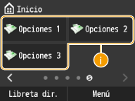 <Opciones de copia favoritas> <Opciones de fax favoritas> <Opciones de lectura favoritas>Muestra las opciones utilizadas con mayor frecuencia registradas en cada una de las funciones de copia, fax y lectura. <Copia de carné> está registrada previamente en <Opciones 1>. Registro de opciones de copia utilizadas frecuentemente