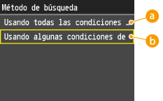 Especifique los criterios de búsqueda utilizando las teclas numéricas, y pulse <Aplicar>.