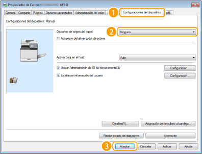 Puede usar los controladores de impresora PCL5c, PCL6 y PS, así como el controlador de impresora UFRII. Las opciones de impresión disponibles varían en función del controlador de impresora. Para obtener más información, haga clic en [Ayuda] en la pantalla de cada controlador de impresora.
