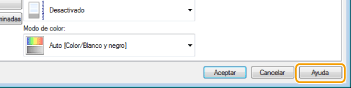 Si hace clic en [Ayuda] en la pantalla del controlador de impresora aparecerá la pantalla Ayuda. En esta pantalla puede ver información detallada que no se incluye en el e-Manual.