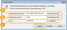 Compruebe el nombre del documento, el nombre de usuario y el PIN, y haga clic en [Aceptar].