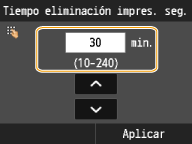 Especifique el periodo de tiempo durante el cual el equipo conservará los documentos protegidos, y pulse <Aplicar>.