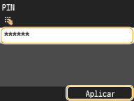 Introduzca el PIN utilizando las teclas numéricas, y pulse <Aplicar>.