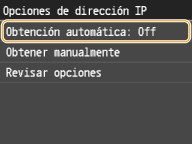 establezca tanto <Seleccionar protocolo> como <IP automática> en <Off>. |