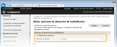 Marque la casilla de verificación para que el equipo responda a los paquetes de detección de multidifusión del software de administración de dispositivos y habilite la supervisión por parte del software de administración de dispositivos. [Nombre de ámbito]