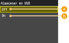 Prohíbe que los datos se almacenen en un dispositivo de memoria USB. Los datos escaneados no pueden almacenarse en el dispositivo de memoria USB.