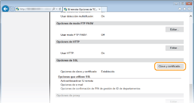 Haga clic en [Clave y certificado...] en [Opciones de TLS].