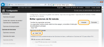 Haga clic en [Opciones de seguridad]  [Opciones de IU remota].