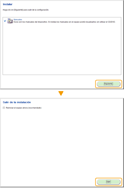 Desmarque todas las casillas de verificación excepto [Manuales], y haga clic en [Instalar].