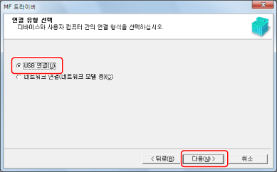 다음 화면이 표시되면 [USB 연결]을 선택 → [다음]을 클릭합니다.