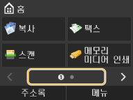 를 터치하거나 디스플레이에서 드래그/튕기기해서 페이지를 이동시킬 수 있습니다. 홈 화면 버튼을 터치하면 대응하는 기능을 작동시키기 위한 화면을 표시합니다.![]() |