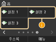 ![]() | <복사 즐겨찾기 설정> <팩스 즐겨찾기 설정> <스캔 즐겨찾기 설정>복사, 팩스 및 스캔 기능 각각에 대해 등록된 자주 사용되는 설정을 표시합니다. <설정 1>에 대해서는 <ID 카드 복사>가 사전설정되어 있습니다.자주 사용하는 복사 설정 등록 |