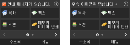 ![]() <안내 메시지가 있습니다.> 또는 <우측 아이콘을 탭합니다 ->>가 표시되는 경우 |