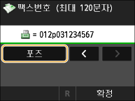 4 | 필요에 따라 <포즈>를 터치하여 팩스 번호 끝에 일시정지를 삽입하고 합니다. 여기에 삽입되는 대기 시간은 10초로 고정됩니다. 이 시간은 변경할 수 없습니다. ![]() |