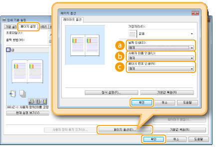 ![]() | 날짜 또는 페이지 번호 등의 정보를 인쇄하고 문서에 이 정보를 인쇄할 위치를 지정할 수 있습니다(왼쪽 상단, 오른쪽 하단 등). |