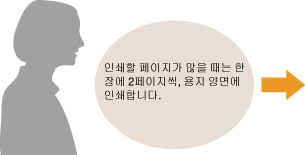 | | [1면에 2쪽 인쇄] 및 [양면 인쇄] 설정을 "프로파일"로 등록하고 필요할 때마다 이 프로파일을 선택합니다. 자주 사용하는 인쇄 설정 조합 등록 |