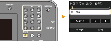 ![]() | 조작 패널의 숫자 키를 사용하여 수신인을 지정합니다. |