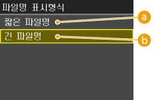 ![]() | 메모리 미디어에 대한 모든 설정이 간단한 설명과 함께 나열됩니다. 기본 설정에는 칼표( )가 표시됩니다. |