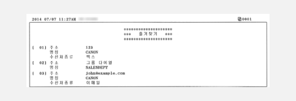 주소록을 인쇄하여 <단축 다이얼>, <즐겨찾기> 및 <그룹 다이얼> 등 주소록에 등록된 수신인 목록을 확인할 수 있습니다.