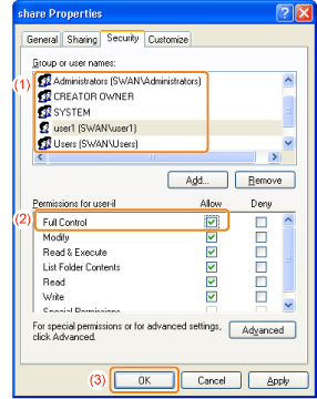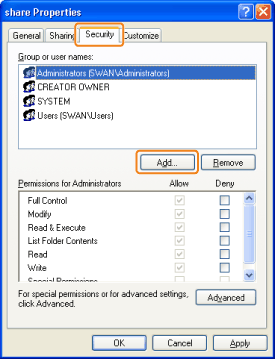 If [Security] Type Is Not Displayed on the Shared Folder [Property] ScreenProceed to Step 10.
