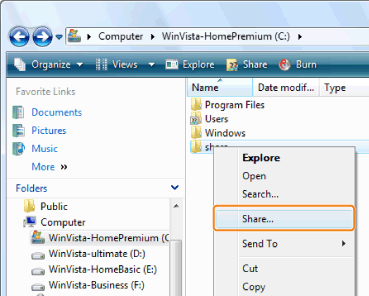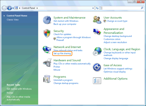From the [Start] menu, select [Control Panel] and click [Set up file sharing].