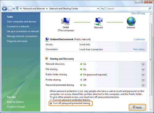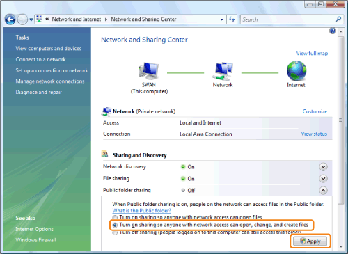Select [Turn on sharing so anyone with network access can open, change, and create files], and then click [Apply].