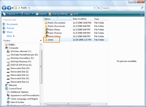 We recommend creating the shared folder in a location that would be easy to find later, such as directly under the C drive.