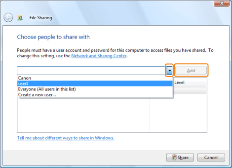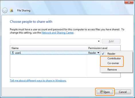 Click [] to on the left of [Add], select the user with whom you wish to share, and click [Add].