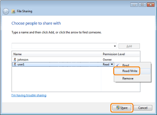 ] to on the left of [Add], select the user with whom you wish to share, and click [Add].