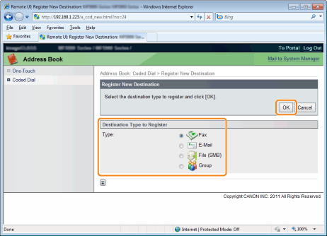 If you selected <Fax> in Step 4, press [OK] to specify <Set Details> if necessary.