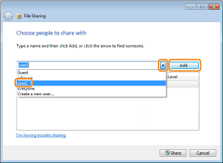 Click [] to on the left of [Add], select the user with whom you wish to share, and click [Add].