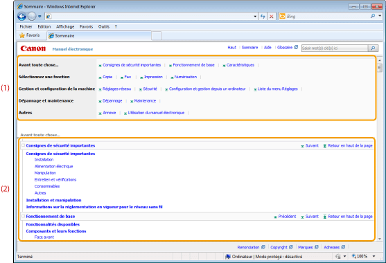 Affiche toutes les catégories et sections du manuel électronique. Cliquez sur une catégorie ou une section pour afficher ses détails.