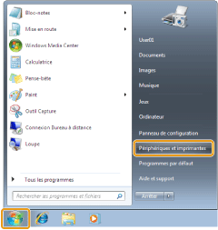 Sous Windows XP Edition familiale, cliquez sur [Démarrer] → [Panneau de configuration] → [Imprimantes et autres périphériques] → [Imprimantes et télécopieurs].