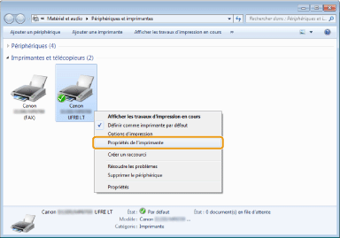 ] (Démarrer) → [Panneau de configuration] → [Imprimante].Sous Windows XP Professionnel/Server 2003, cliquez sur [Démarrer] → [Imprimantes et télécopieurs].