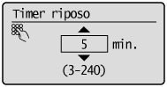 Per impostare il timer di riposo automaticoÈ possibile impostare un tempo di avvio del riposo automatico compreso tra <3> e <240> minuti, in intervalli di un minuto. Il valore predefinito per questa impostazione è <5> minuti.