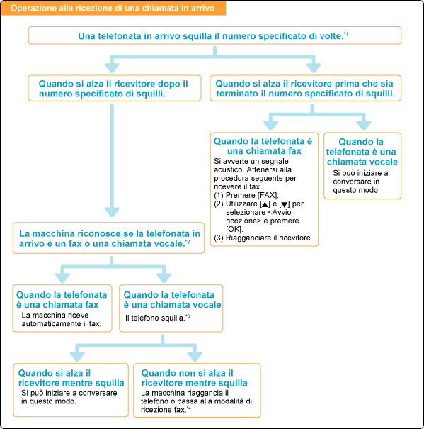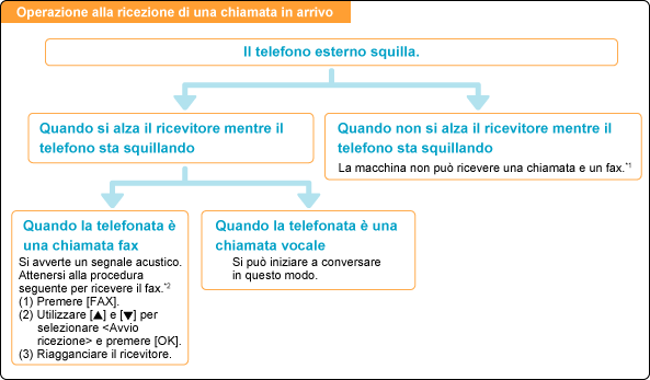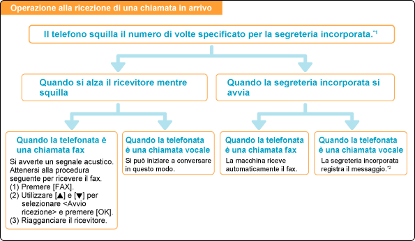 La macchina consente di ricevere fax automaticamente o manualmente, in modo diversi.