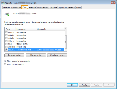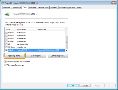 Configurare le impostazioni della porta sul computer per utilizzare l'indirizzo IP della macchina.